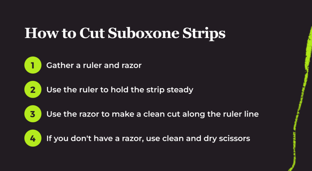 When stopping Suboxone, you may want to wean off very slowly to prevent withdrawal symptoms or the return of cravings. For example, your doctor may tell you to take half of your daily strip for a week or two before discontinuing altogether. In this scenario, you may be cutting your strip in half.
